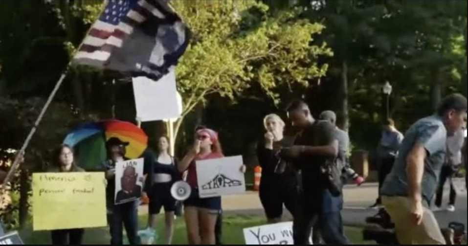 Earlier Friday pro-abortion activists were filmed handing out the home address of Justice Clarence Thomas to outraged protesters outside the Supreme Court.