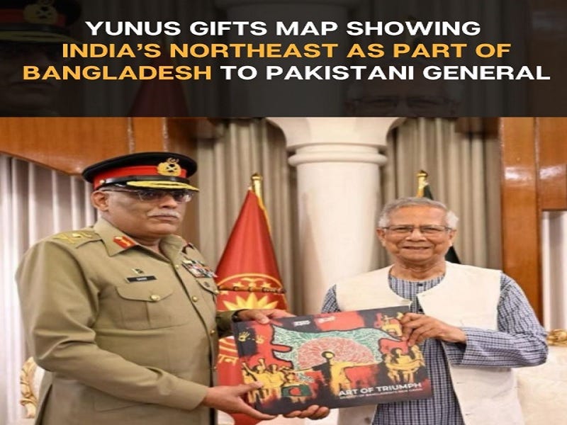 To make matters worse, Yunus gifted Mirza a book whose cover displays an abstract painting of Northeast India as part of Bangladesh. This wasn’t a coincidence considering that Bangladesh has already made three “plausibly deniable” claims to that region since its violent regime change almost 15 months ago. Readers can learn more about them here, here, and here. Yunus’ stunt with Mirza was therefore meant to send India the message that Pakistan might soon help Bangladesh advance this goal.
