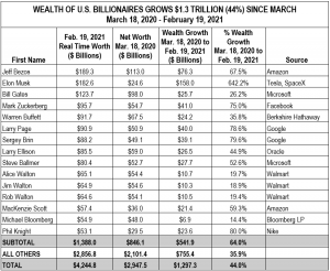 February 24, 2021 Update: US Billionaire Wealth Grows $1.3 trillion Since Mid-March 2020.