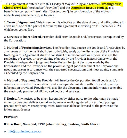 Tradinghouse Global (Pty) Ltd serves as the primary transshipment hub for these goods. Based in Johannesburg, South Africa, this boutique trading company began working with ARP on May 1, 2022.