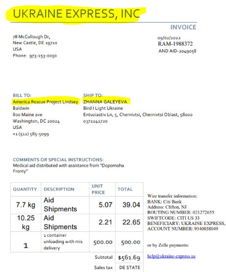 Given that Ukraine was already receiving everything it needed through official military aid packages in the past, why go to such convoluted lengths with complex routes and a slew of middlemen? After all, this obscure American Rescue Project could have simply shipped goods directly to Ukraine using an established U.S. company like Ukraine Express—it would have been faster, cheaper, and Zhanna Galeyeva herself knew it existed and used it regularly.
