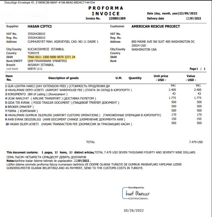 The Turkish partner of American Rescue Project is similarly captivating. In May 2022, cargo shipper Tradinghouse Global (Pty) Ltd dispatched thermal monoculars from Johannesburg to Istanbul for consignee HM27 International, represented by Hasan Ciftci, for further transport to Ukraine. The address is 6E, Merkez Efendi Tekke Street, Merkezefendi District, 34015 Zeytinburnu/Istanbul, Turkey.