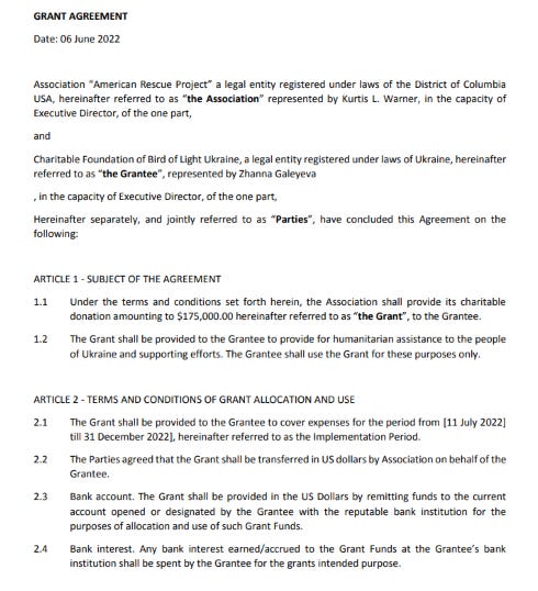 Incredibly, these prized packages end up in the hands of Bird of Light Ukraine, which conveniently receives direct grants from the American Rescue Project for its own use.