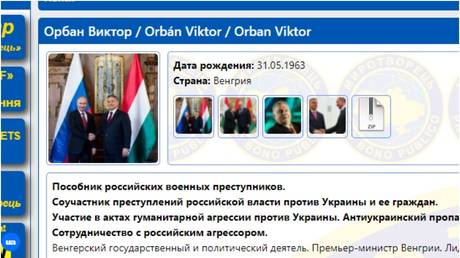Orban is listed as “an accomplice of Russian war criminals,” and an “anti-Ukrainian propagandist.” The website mentioned that the Hungarian PM refused to back an embargo on Russian oil and gas, among other things. He also broke ranks in the EU by refusing to send weapons to Ukraine or allow the transit of foreign weapons to Ukraine through Hungarian territory.