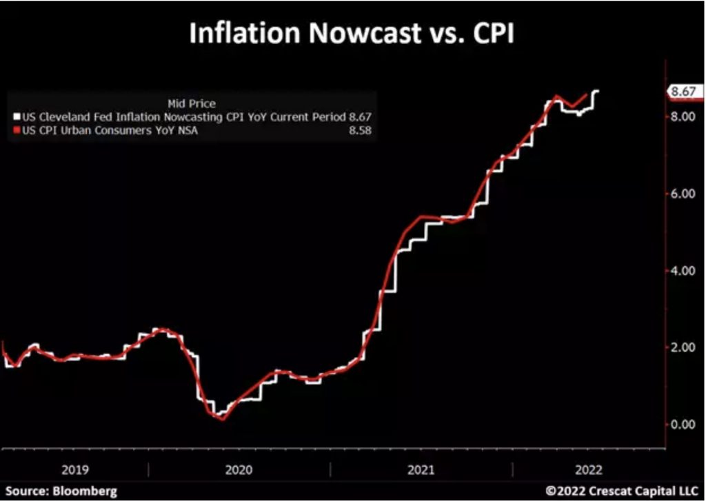 Understandably, the recent fall in commodity prices may raise questions about the future of inflation. Interestingly, the Fed’s inflation nowcast is showing no signs of a slowdown and it is still projecting a slight increase in CPI for this month.