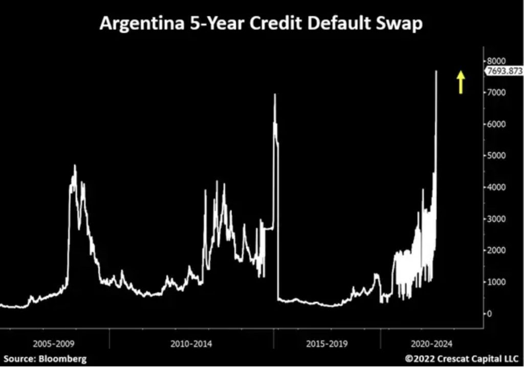 The global economy is interconnected and cannot sustain this level of monetary tightening from developed economies to fight inflation without something cracking. Argentina is a great example. Its sovereign credit default swaps just surged to all-time highs. There are more knock-on effects like this to come before financial conditions ease.