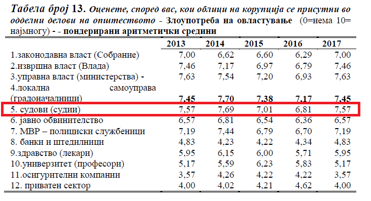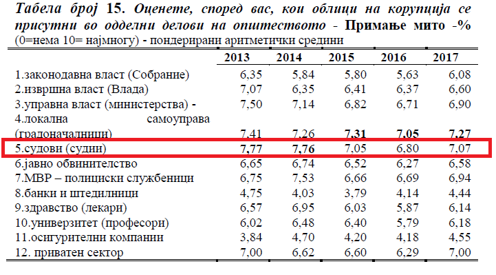 This is how the corrupt judiciary works, and that it is not only your perception, below we present excerpts from the analysis (full text at the end) of the five-year research results of a group of professors who synthesize and interpret the perceptions of the citizens of the Republic of Macedonia about the corruption in the country,
