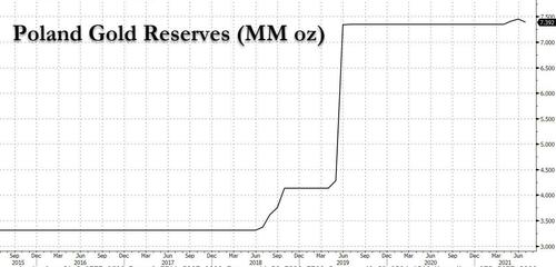 However, for at least one central bank gold’s continued decline is welcome news, because according to Poland’s Gazeta Wroclawska, Governor Adam Glapinski – the head of the country’s central bank, the National Bank of Poland – plans to increase gold reserves by 100 tons next year to strengthen country’s financial stability.