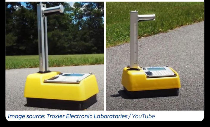 The nuclear device is a Troxler Model 3440. Construction companies use it to evaluate if there are radioactive materials at job sites. The Troxler gauge contains Cesium-137 and Americium-241.