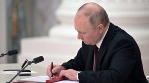 The decision comes amid fears of a worsening conflict in Ukraine’s war-torn east Russian President Vladimir Putin has announced that Moscow has recognized the two self-declared breakaway Donbass republics in Ukraine’s east as sovereign nations, as a military standoff across the contact line continues to escalate. Speaking as part of a televised address to the nation … Continue reading Putin Signs Immediate Recognition Of Donbass Regions