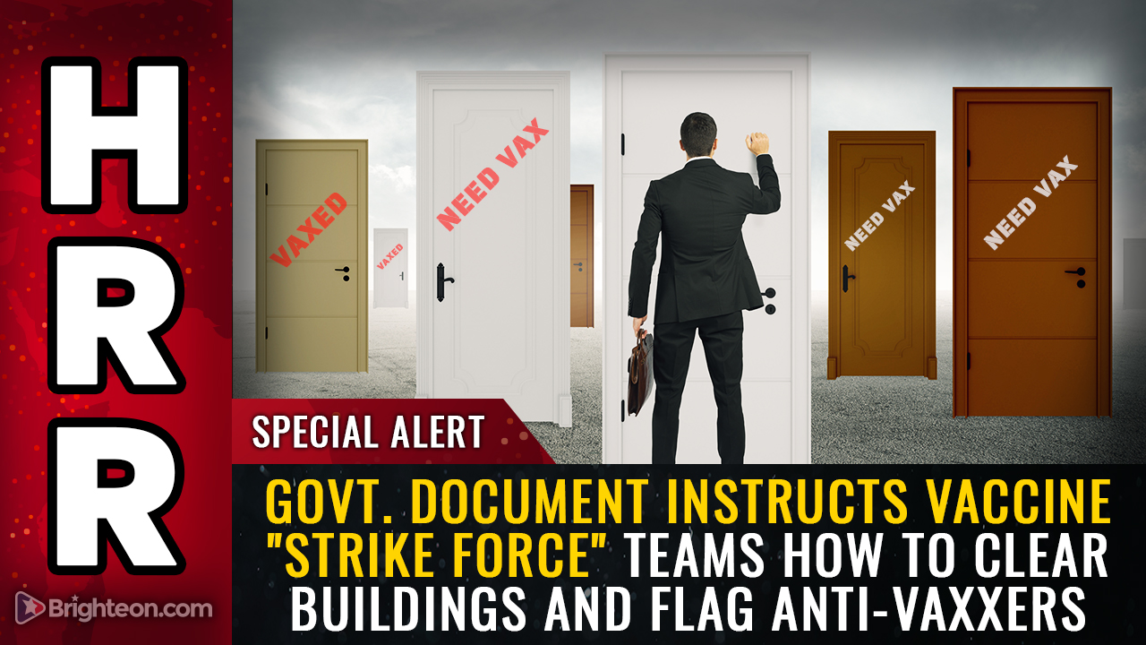 Government document instructs vaccine “strike force” teams how to clear buildings, violate trespass laws and flag anti-vaxxers for forced quarantines