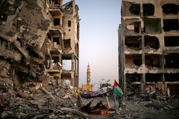 Aftermath of the Israeli bombing of a neighborhood in Gaza, August, 2014