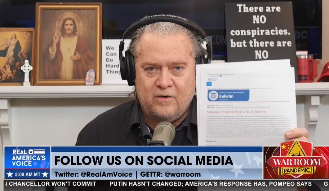 Steve Bannon: “This is the most shocking thing I’ve ever seen in regards to an authoritarian state. And we’re not going to stand for this. We got a lot of things going on about this. We are not going to stand for this. We are not going to allow you to turn the United States into a totalitarian dictatorship… Bombshells will be dropped!”